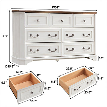 OKD Farmhouse Bedroom 7 Drawers Dresser, Wood Rustic Dresser Tv Stand