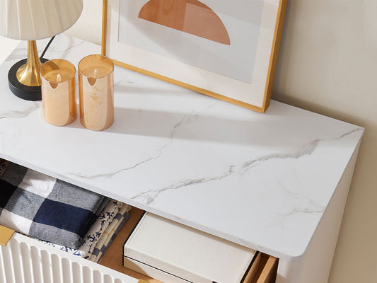 OKD Modern Fluted 6 Drawers Dresser with Faux Marble Top