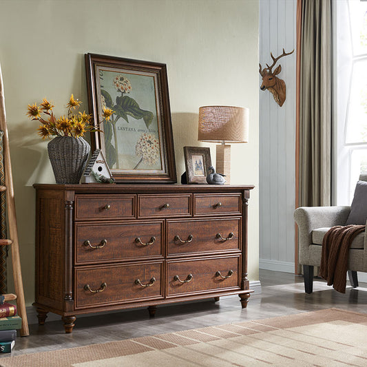 OKD Farmhouse Bedroom 7 Drawers Dresser, Wood Rustic Dresser Tv Stand