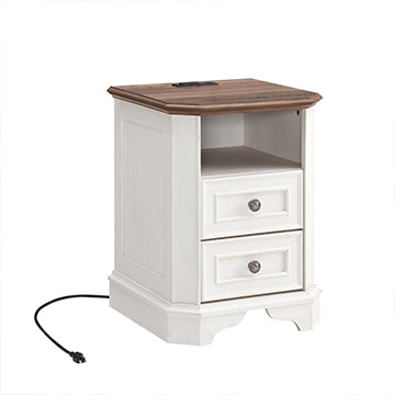 OKD Farmhouse 2 Drawers Nightstand with Charging Station and Open Cubby