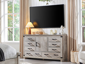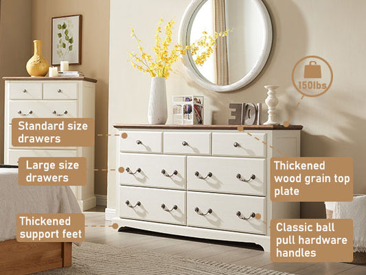 OKD Farmhouse Wood Rustic Bedroom 7 Drawers Dresser