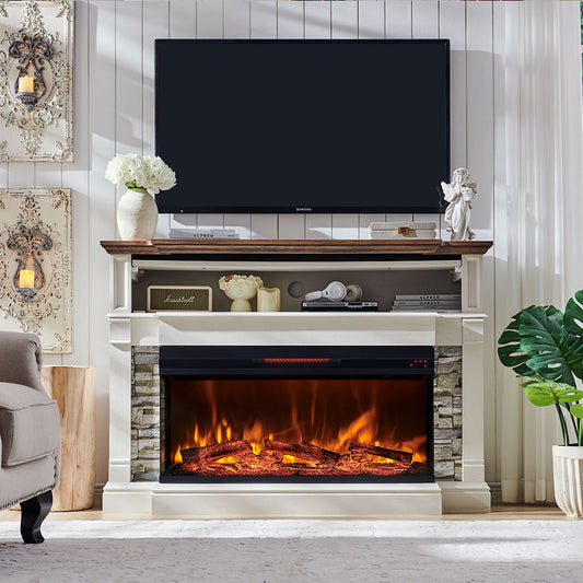 OKD 52 inch Electric Fireplace with Mantel with 36" 3-Side Glass Insert