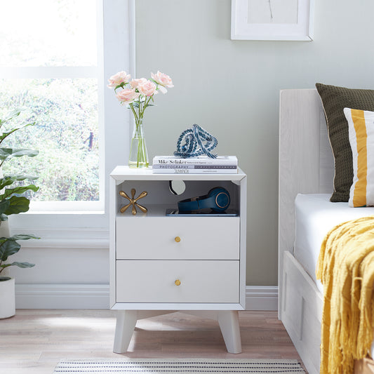 OKD 18 inch Nightstand with Charging Station, Modern End Table with 2 Drawers