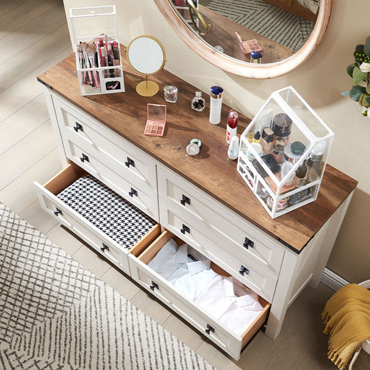 OKD Wood Farmhouse 6 Drawers Double Dresser for Bedroom