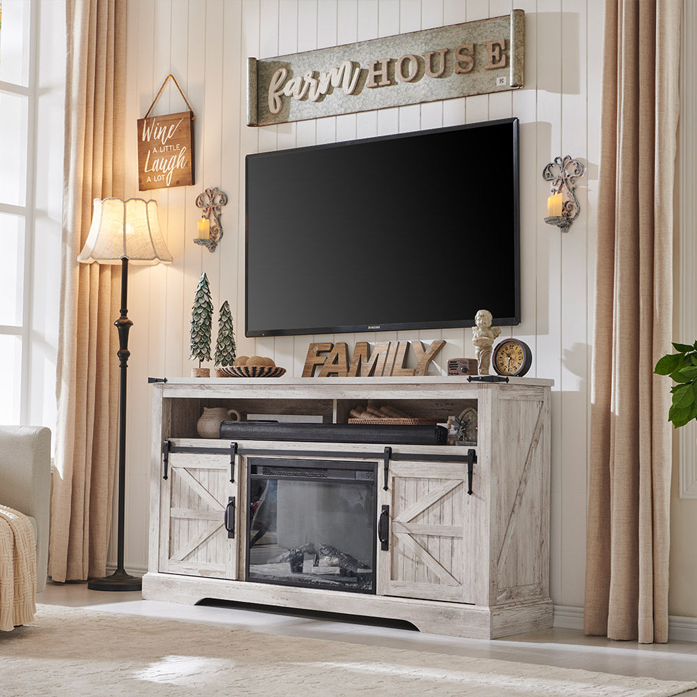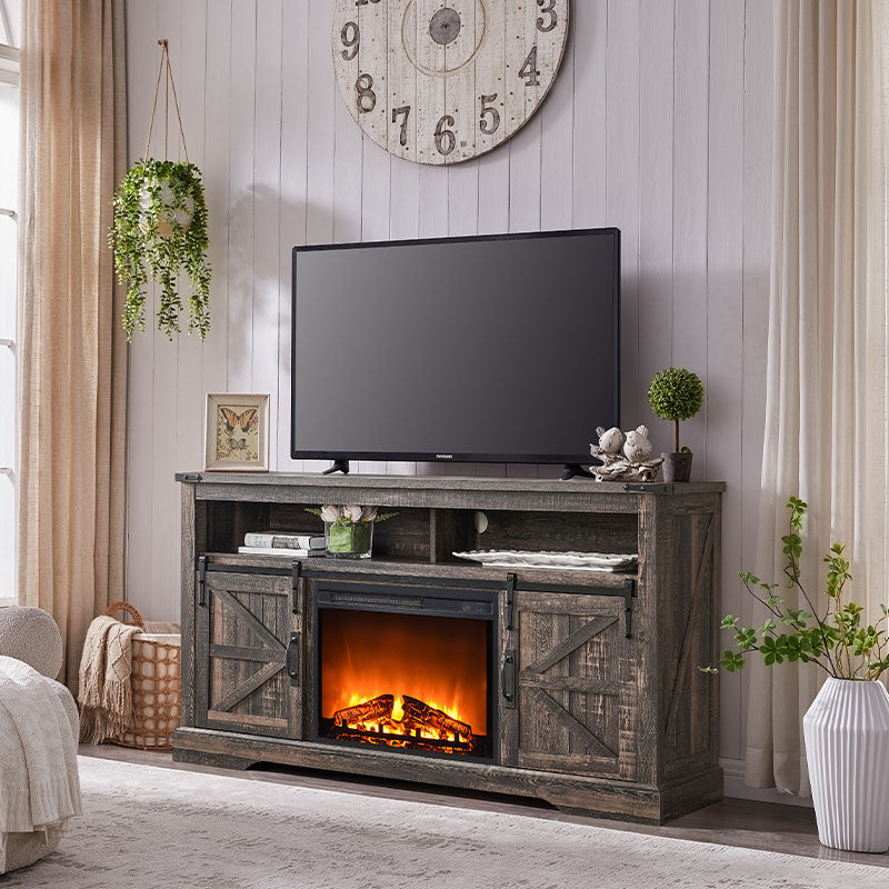 - Quality You Can Count On: Thanks to the premium and durable MDF and particleboard used to make this fireplace entertainment center, you can rest assured you'll have it for years to come. Moreover, well structural design, 1" thick tabletop, and 3.34" high wooden support base ensure excellent stability, durability, and large weight capacity for this media console with fireplace. The tabletop of this tv stand supports up to 150 Ibs.
