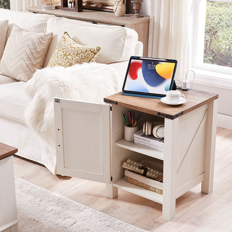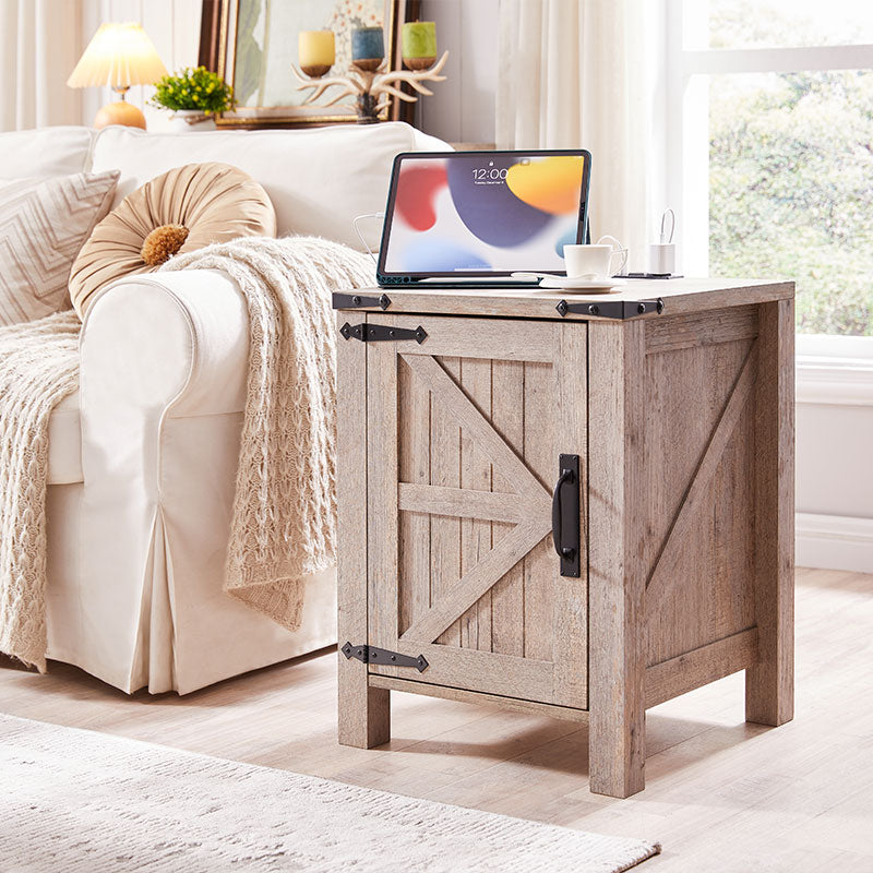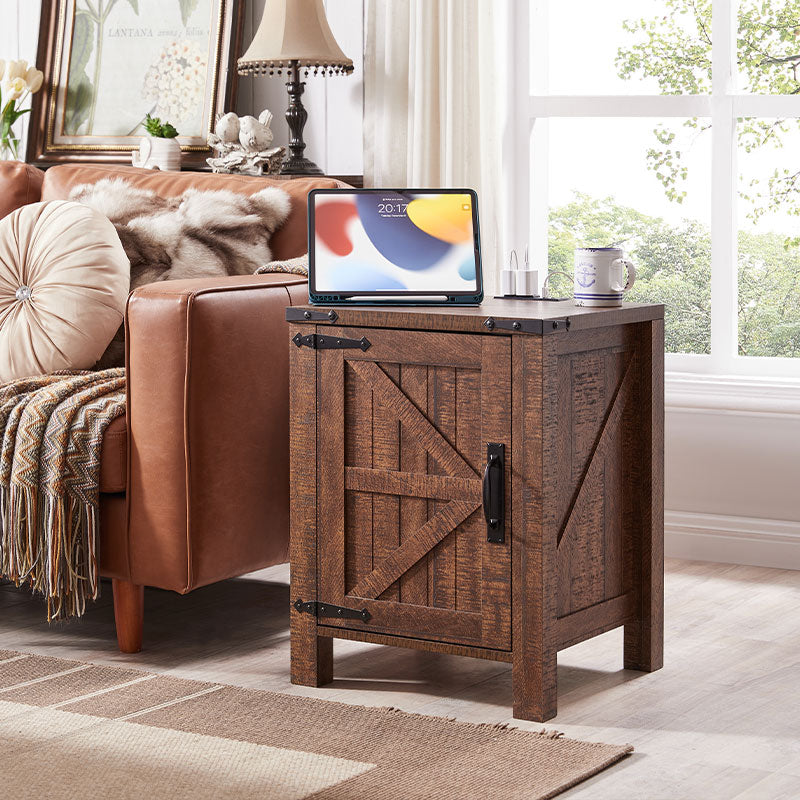 - MULTI-FUNCTIONAL SIDE TABLE: Both as a end table in your bedroom and a sofa side table on your living room, with flexible and concealed storage space to keep your room organized and free of clutter. Whether you are a fan of a modern style or a lover of a vintage feel, this night stand will be a perfect match to your room decor and show your personal style and will catch your eyes for the fashion barn door design, classic farmhouse style, sturdy structure